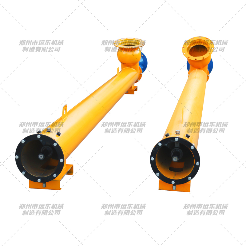 螺旋輸送泵是一種利用電機(jī)帶動(dòng)螺旋回轉(zhuǎn),推移物料以實(shí)現(xiàn)輸送目的的機(jī)械。它能水平、傾斜或垂直輸送,具有結(jié)構(gòu)簡(jiǎn)單、橫截面積小、密封性好、操作方便、維修容易、便于封閉運(yùn)輸?shù)葍?yōu)點(diǎn)。螺旋輸送機(jī)在輸送形式上分為有軸螺旋輸送機(jī)和無軸螺旋輸送機(jī)兩種,在外型上分為U型螺旋輸送機(jī)和管式螺旋輸送機(jī)有軸螺旋輸送機(jī)適用于無粘性的干粉物料和小顆粒物料.(例如:水泥、粉煤灰、石灰、糧等)而無軸螺旋輸送機(jī)適合輸送機(jī)有粘性的和易纏繞的物料。(例如:污泥、生物質(zhì)、垃圾等)螺旋輸送機(jī)的工作原理是旋轉(zhuǎn)的螺旋葉片將物料推移而進(jìn)行螺旋輸送機(jī)輸送,使物料不與螺旋輸送機(jī)葉片一起旋轉(zhuǎn)的力是物料自身重量和螺旋輸送機(jī)機(jī)殼對(duì)物料的摩擦阻力。螺旋輸送機(jī)旋轉(zhuǎn)軸上焊的螺旋葉片,葉片的面型根據(jù)輸送物料的不同有實(shí)體面型、帶式面型、葉片面型等型式。螺旋輸送機(jī)的螺旋軸在物料運(yùn)動(dòng)方向的終端有止推軸承以隨物料給螺旋的軸向反力,在機(jī)長(zhǎng)較長(zhǎng)時(shí),應(yīng)加中間吊掛軸承。