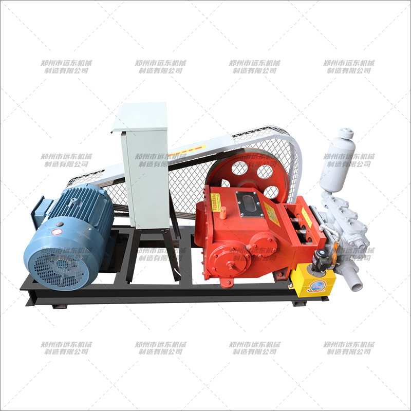 BW300注漿機(jī)主要作用于隧道開鑿與維護(hù)道路、橋梁、水壩、礦山建設(shè)和高層建筑的基礎(chǔ)設(shè)施處理工程及各類注漿施工工程,巖芯鉆機(jī)配套輸送泥漿,礦井排污及遠(yuǎn)距離送水等其他用途。 該機(jī)為臥式三缸往復(fù)單作用活塞泵,該泵具有兩種缸徑和四擋變量,大缸套用于1000米大口徑鉆機(jī)配套,小缸套用于1500米小口徑鉆機(jī)配套。 1、具有可滿足大小口徑鉆機(jī)所需的各四擋流量,參數(shù)選合理,可與XY-4和XY-5型鉆機(jī)配套使用??蓾M足不同口徑、不同孔深、不同地質(zhì)巖心鉆探的需要。 2、活塞為碗形加尼龍靠背的自封式S型聚胺脂橡膠活塞,大大提高使用壽命。3、拉桿上設(shè)有五道防塵密封圈,以防止液力端的泥漿帶入動(dòng)力端和動(dòng)力端潤滑濾。密封可靠,使齒輪延長使用壽命。 4、進(jìn)排水閥采用鋼球。并在閥蓋上設(shè)有減聲橡膠墊,以減少?zèng)_擊噪聲。5、壓力表采用BY-1型抗震壓力表,壽命長。 6、可拆性好,便于維修和搬遷。